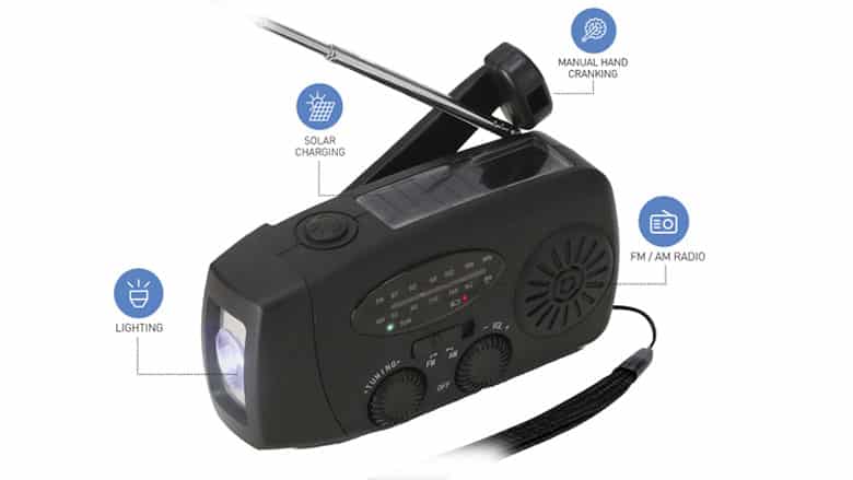 • Een multifunctionele noodradio (met handmatig en/of zonnepaneel opladen)